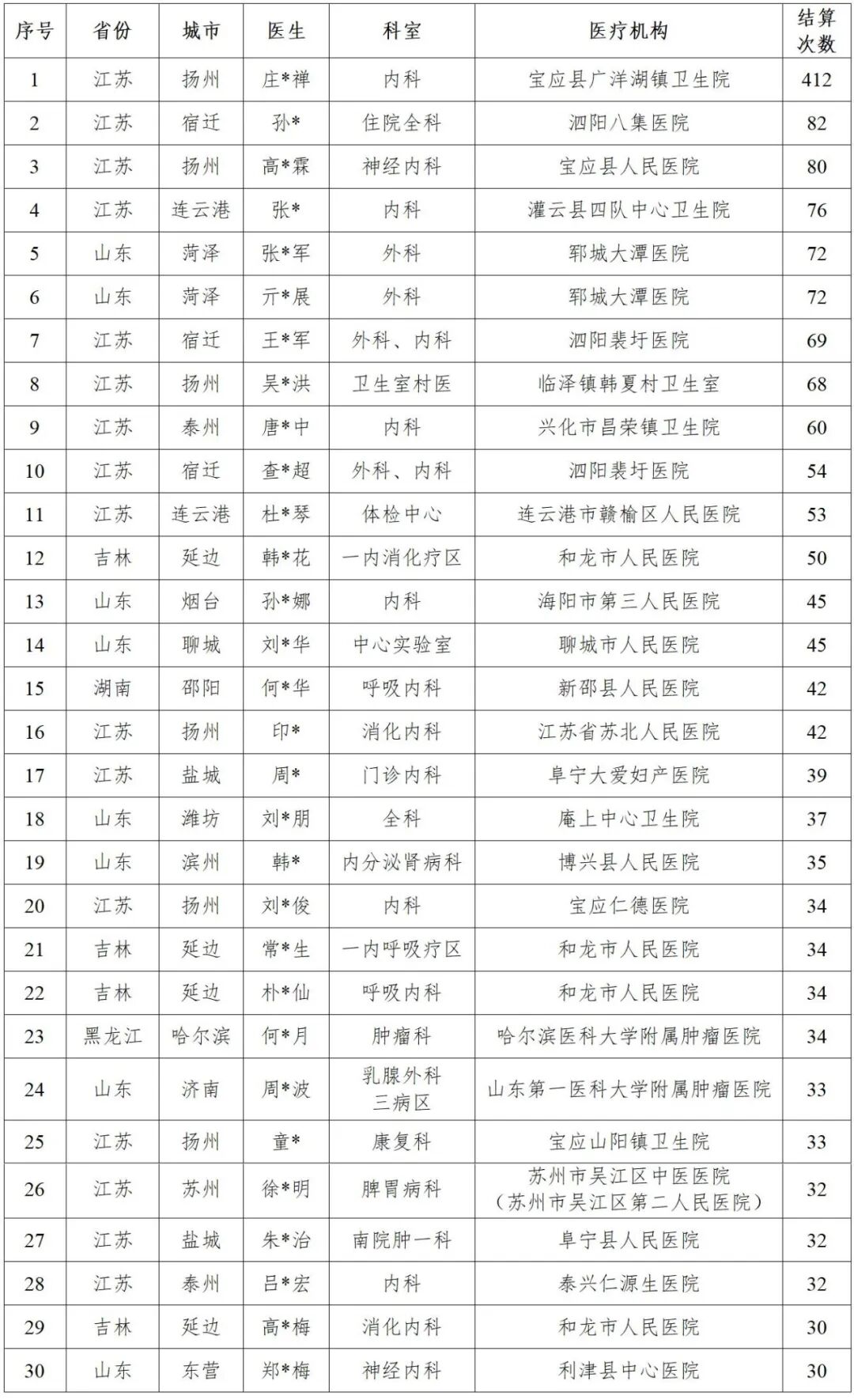 前面,我们从医疗机构、医务人员、参保人3个方面分析了产生此类违法违规行为的部分原因。那此类问题,有哪些医疗机构、科室医生违规次数最多呢?